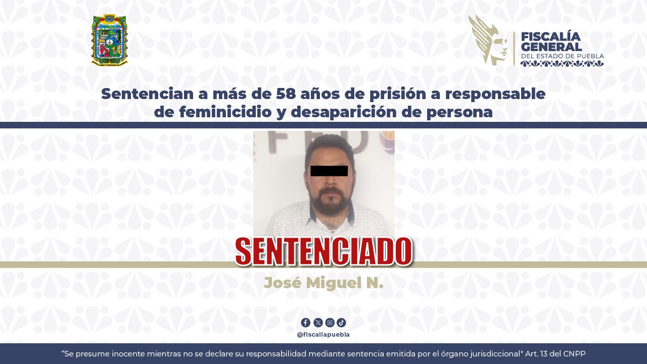 CIUDAD DE PUEBLA, PUE. (19 de marzo, 2026) — Como resultado del seguimiento procesal y la presentación de pruebas contundentes, la Fiscalía General del Estado de Puebla (FGE) obtuvo una sentencia condenatoria de más de medio ...