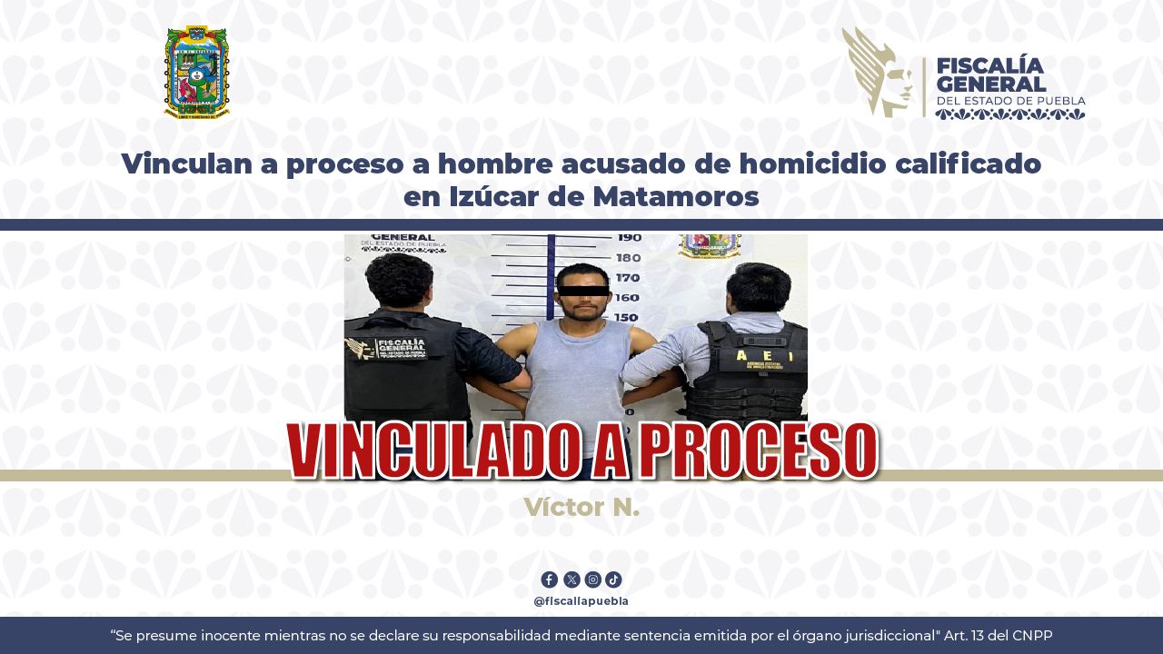 IZÚCAR DE MATAMOROS, PUE. (19 de marzo, 2026) — Como resultado de las investigaciones conducidas por la Fiscalía General del Estado de Puebla (FGE), un juez de control dictó el auto de vinculación a proceso en contra de Víc...