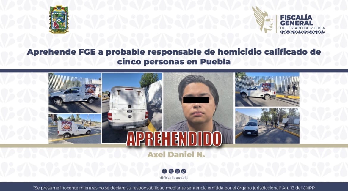 CIUDAD DE PUEBLA, Pue.- Como parte de labores de investigación, la Fiscalía General del Estado de Puebla logró la captura de Axel Daniel N., de 30 años de edad, señalado como probable responsable del delito de homicidio calif...