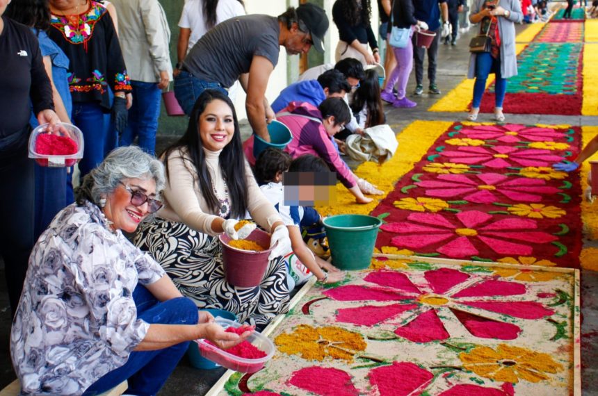 San Pedro Cholula, Pue.- En el marco de las celebraciones de Semana Santa, el Ayuntamiento de San Pedro Cholula llevó a cabo la colocación de una alfombra monumental de aserrín en el Portal Guerrero, ubicado en la Plaza de la Concordia, punto por ...