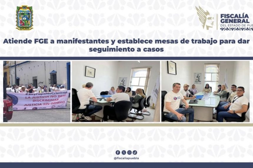 Puebla, Pue., 24 de abril de 2026.- La Fiscalía General del Estado de Puebla (FGE), a través de la Fiscalía Especializada en Investigación de Delitos de Violencia de Género contra las Mujeres, recibió a un grupo de manifesta...