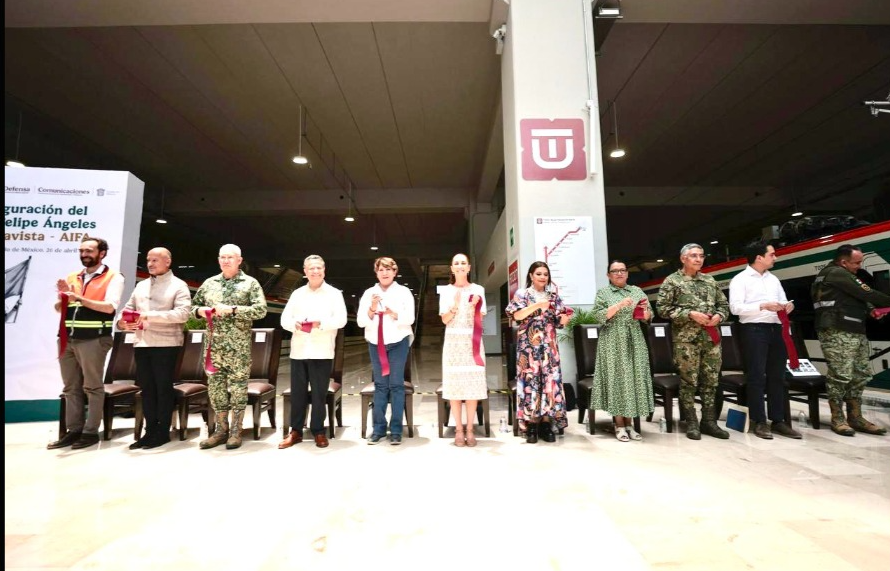 Zumpango, Estado de México, 26 de abril de 2026.- La presidenta Claudia Sheinbaum Pardo encabezó la inauguración del tren que enlaza el centro de la Ciudad de México con el Aeropuerto Internacional Felipe Ángeles (AIFA), una ...