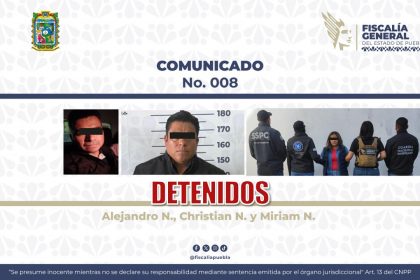 La Fiscalía General del Estado de Puebla informó que, en colaboración con la Secretaría de Seguridad y Protección Ciudadana y la Fiscalía General de Justicia del Estado de Tlaxcala, cumplimentó...