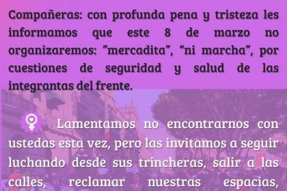 El Frente Feminista Radical de Puebla anunció que no participará en la movilización del próximo 8 de marzo y que cancelará la tradicional “Mercadita” que solían realizar durante esta jornada...