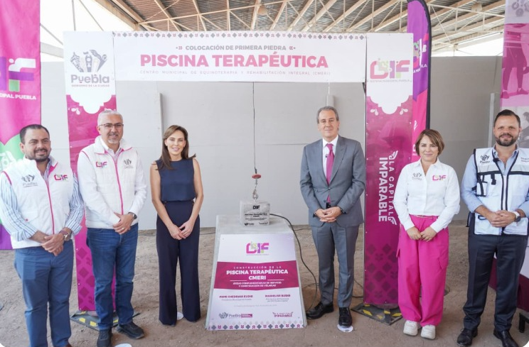 Puebla, Pue., 16 de abril de 2026.– Como parte de las acciones para fortalecer la atención a personas con discapacidad, el Gobierno de la Ciudad colocó la primera piedra de la Piscina Terapéutica en el Centro Municipal de Equinoterapia y Rehabilitación Integral (CMERI), con el objetivo de ampliar los servicios de rehabilitación.