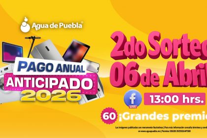 Puebla, Pue., 05 de abril de 2026.- Como reconocimiento a la confianza y puntualidad de más de 166 mil usuarios que realizaron su Pago Anual Anticipado, Agua de Puebla llevará a cabo este lunes 6 de...