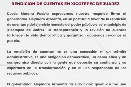 Puebla, Pue. – La dirigencia estatal de MORENA ha manifestado su respaldo absoluto a la decisión del gobernador Alejandro Armenta de ordenar una auditoría exhaustiva a las finanzas del Ayuntamient...