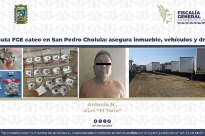 Asegura Fiscalía de Puebla inmueble, narcóticos y flota de vehículos tras cateo en San Pedro Cholula