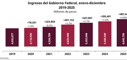 El Servicio de Administración Tributaria (SAT) informa que en 2025 los ingresos del Gobierno Federal, encabezado por la Presidenta Claudia Sheinbaum Pardo, alcanzaron los 6 billones 45 mil 795 millon...