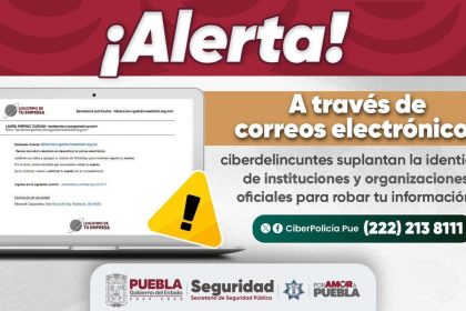 CIUDAD DE PUEBLA, PUE. (22 de abril, 2026) — La Secretaría de Seguridad Pública (SSP), a través de la Policía Estatal Cibernética, emitió una alerta a la ciudadanía ante el incremento de corr...