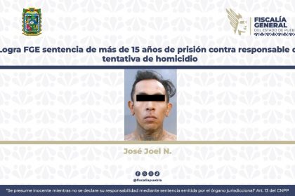 La Fiscalía General del Estado de Puebla obtuvo una sentencia de 15 años, 10 meses de prisión en contra de José Joel N., declarado penalmente responsable del delito de homicidio calificado en grad...
