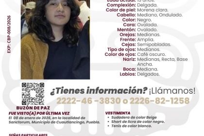 Puebla, Pue. – La Fiscalía General del Estado (FGE) ha confirmado la localización de Andrea N., la joven que había sido reportada como desaparecida en el municipio de Cuautlancingo. La FGE inform...