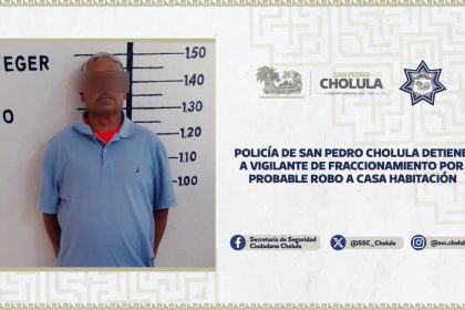 13 de enero, 2026. San Pedro Cholula, Pue.- Elementos de la Secretaríade Seguridad Ciudadana de San Pedro Cholula (SSC Cholula) detuvieron a Julián “N”, de 56 años de edad, por su probable part...