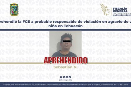 Tehuacán, Pue. – Elementos de la Agencia Estatal de Investigación, adscritos a la Fiscalía General del Estado (FGE), lograron la aprehensión de Sebastián N., señalado como el probable responsa...