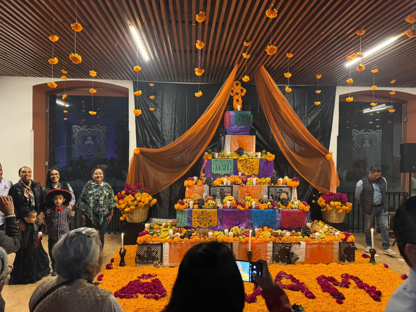 Durante el evento se presentó la Ofrenda Monumental, un tributo a los personajes emblemáticos de esta festividad, como La Catrina, el Xoloitzcuintle y los guardianes del inframundo, quienes guiaron a las y los asistentes por un recorrido lleno de color, música, aromas y simbolismo.