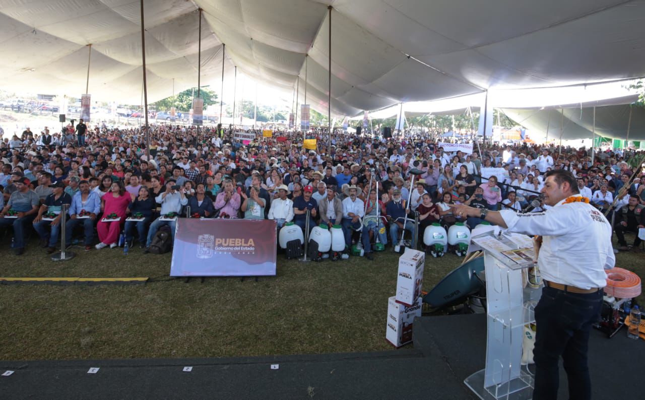 Tenampulco, Pue.- Este municipio se convirtió en el punto de encuentro entre más de 3 mil productoras y productores y el Gobierno del Estado, durante la entrega de apoyos para la transformación del campo poblano. El gobernador Alejandro Armenta resaltó que esta región marca el inicio de Puebla y destacó que las lluvias recientes, aunque difíciles para muchas familias, representan una oportunidad para fortalecer la infraestructura rural y aprovechar el agua como motor del desarrollo agrícola.