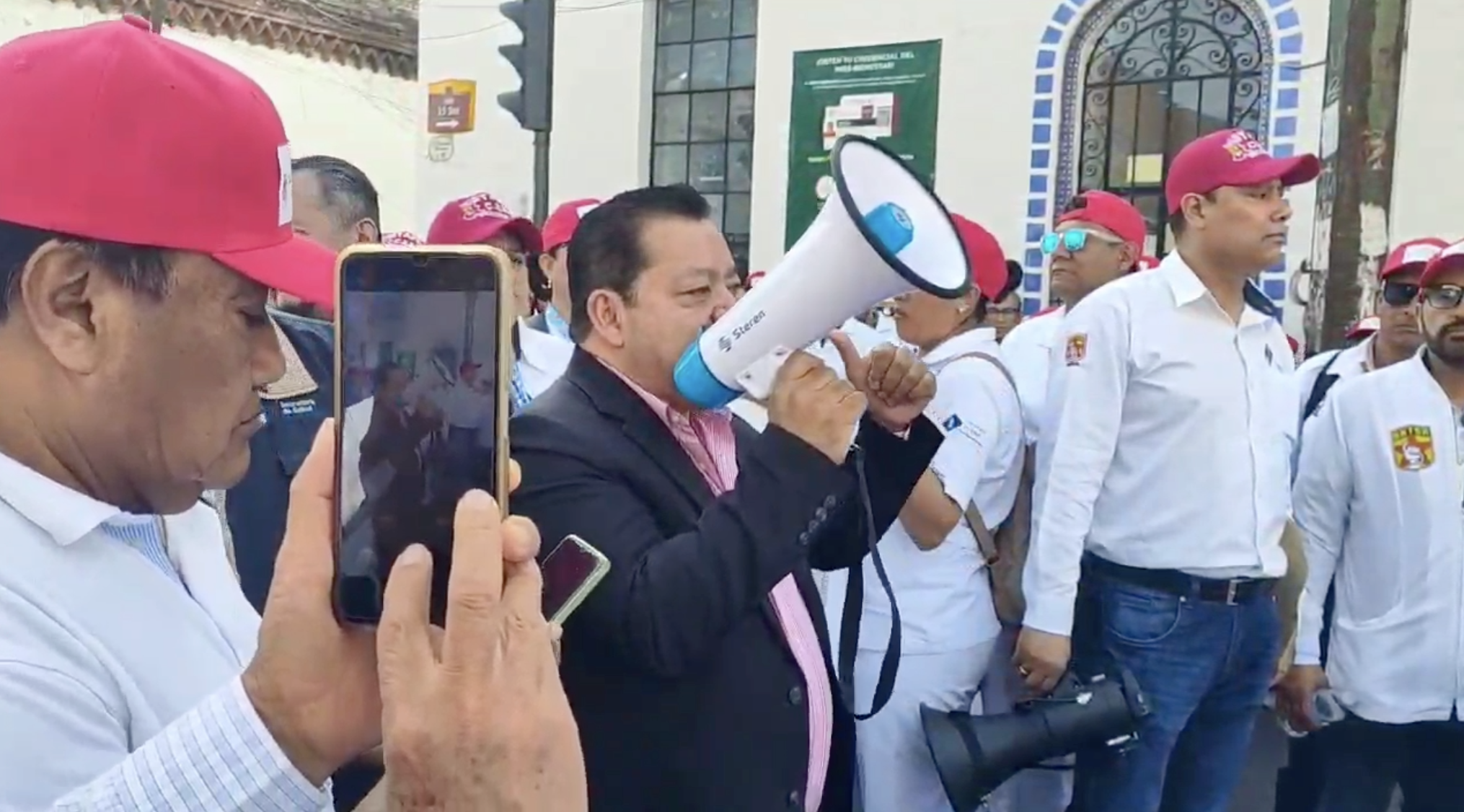 Puebla, Pue. — La manifestación del personal de salud, afiliado a la Sección 25 del Sindicato Nacional de Trabajadores de la Secretaría de Salud, continúa su paso sobre la avenida Reforma. Desde temprana hora, representantes del sindicato exigen a las autoridades la entrega de insumos y el abastecimiento de medicamentos necesarios para brindar atención de calidad a los derechohabientes en los distintos establecimientos del sector.