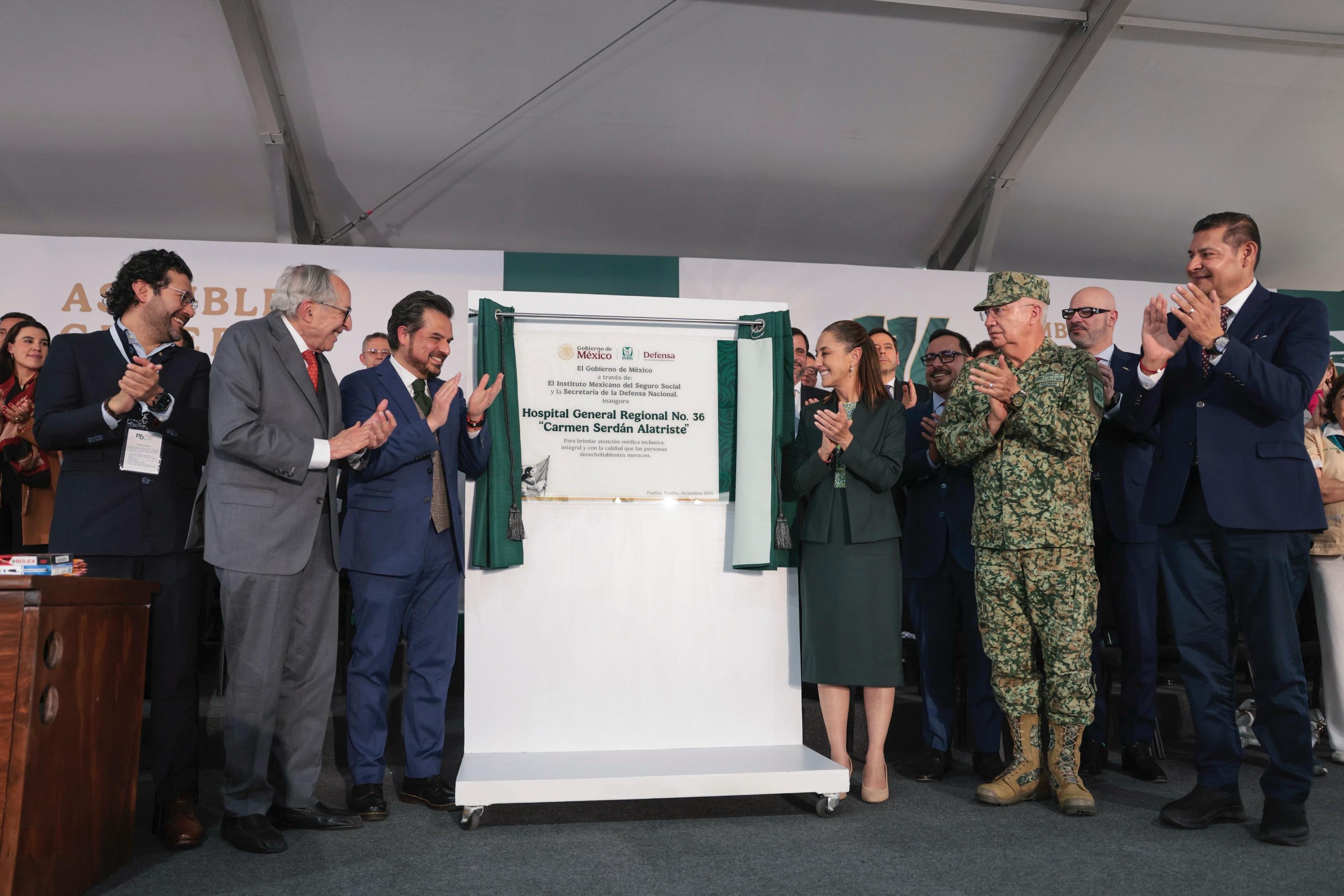 Puebla, Puebla.- Desde Puebla, la Presidenta Claudia Sheinbaum Pardo encabezó la 116 Asamblea General del Instituto Mexicano del Seguro Social (IMSS) en la que se inauguró el nuevo Hospital General Regional No. 36 con el nombre de “Carmen Serdán Alatriste”, en sustitución del Hospital General de San Alejandro que fue afectado por el sismo de 2017, y el cual beneficiará a 554 mil 541 derechohabientes.