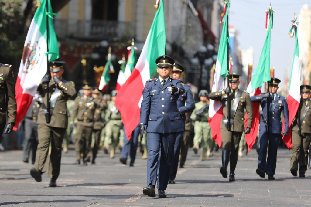 Puebla, Pue.- El gobernador Alejandro Armenta presenció el desfile cívico-militar por el 115 aniversario de la Revolución Mexicana en compañía de su esposa Ceci Arellano y de mandos de la Secretaría de la Defensa Nacional, Guardia Nacional, Secretaría de Marina, miembros del gabinete estatal y autoridades municipales. El recorrido avanzó por 2 kilómetros en el corazón de la capital poblana, desde la avenida Reforma hasta la 25 Oriente, con una duración aproximada de una hora.
