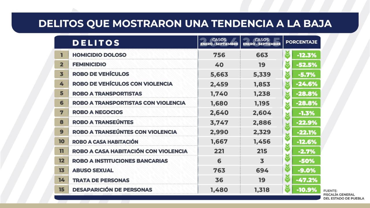 Pastor Betancourt informó que de acuerdo con estadísticas de esta institución procuradora de justicia, los siguientes delitos mostraron una tendencia a la baja: