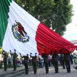 En la parada cívica participaron una bandera monumental, nueve banderas de gaza y nueve de guerra; mil 68 integrantes de las Fuerzas Armadas y de la Guardia Nacional, con 87 vehículos; 10 binomios caninos; 429 elementos de la Secretaría de Seguridad Pública con 54 unidades y cinco equipos; así como 4 mil estudiantes y personal docente.