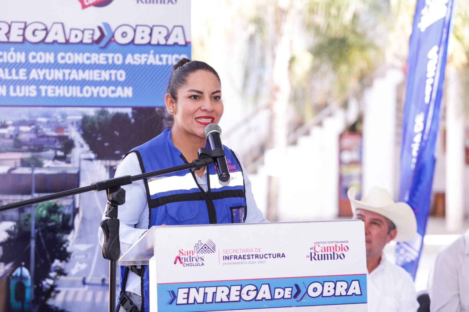 San Andrés Cholula, Puebla. – Lupita Cuautle, presidenta municipal, inauguró la pavimentación de la calle Ayuntamiento, ubicada en la junta auxiliar de San Luis Tehuiloyocan, con el objetivo de mejorar la movilidad y brindar mayor seguridad a las y los habitantes.