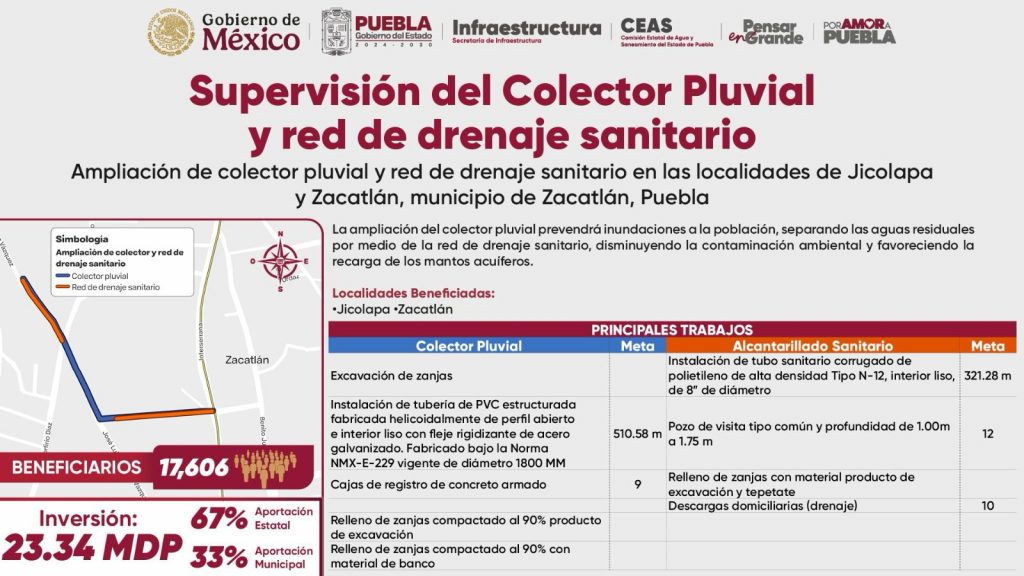 - Esquema de aportación: El Gobierno del Estado cubre el 67% de los recursos, mientras que el Ayuntamiento de Zacatlán aporta el 33% restante.
