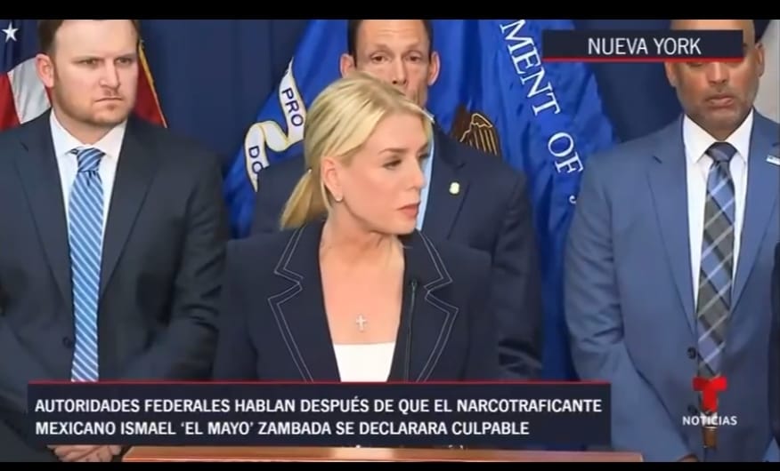 La fiscal general de EE.UU., Pam Bondi, declaró que “El Mayo” García enfrentará una sentencia de cadena perpetua sin posibilidad de libertad, y que no habrá beneficios adicionales ni negociaciones. “Este capo morirá en una prisión federal de Estados Unidos”, afirmó Bondi, agradeciendo la colaboración de las autoridades mexicanas en la captura de Zambada en 2024, lo que fue clave para fortalecer la lucha internacional contra el narcotráfico.