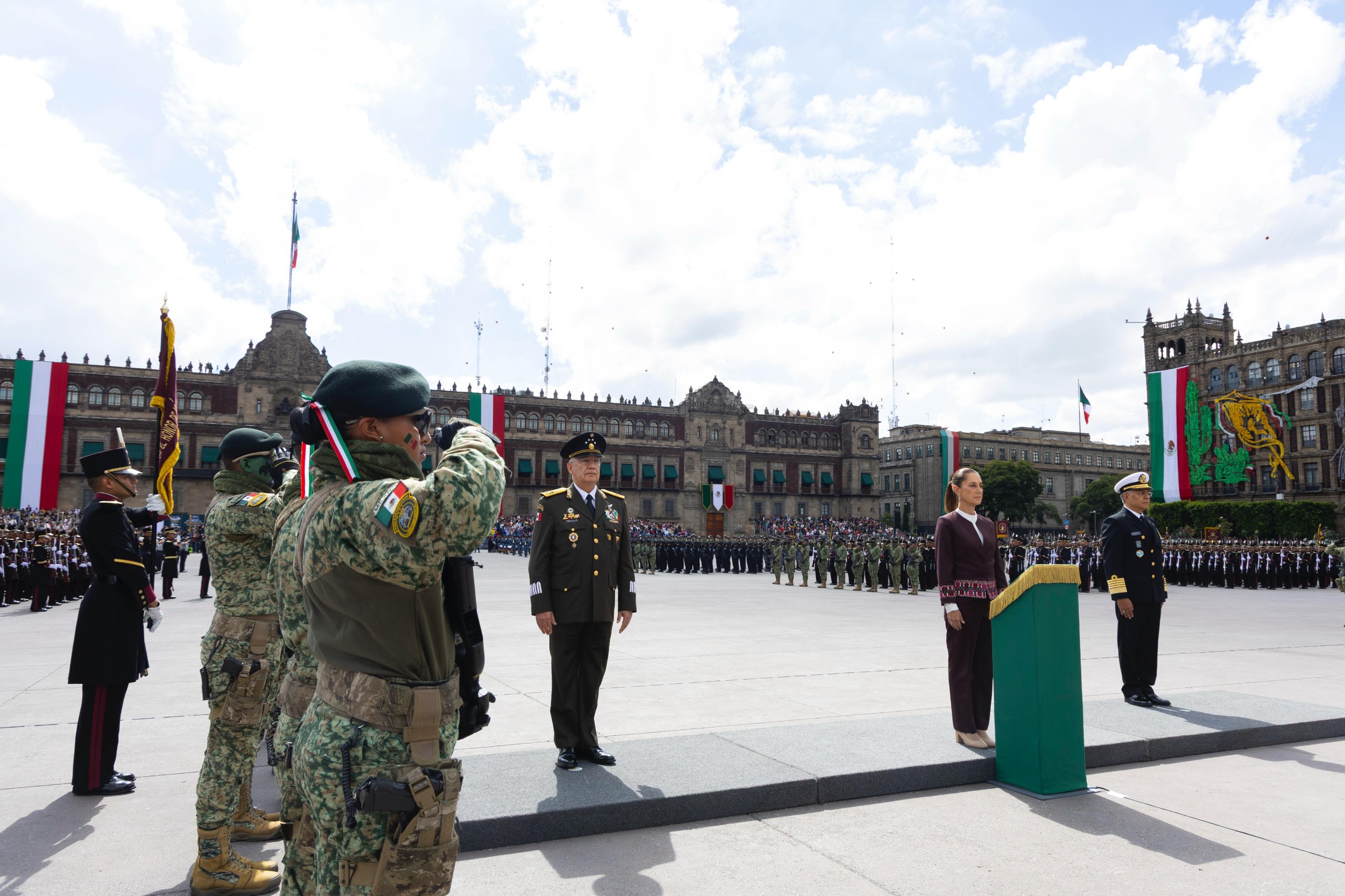 El secretario de la Defensa Nacional, general Ricardo Trevilla Trejo, resaltó el orgullo y emoción de los más de 16 mil efectivos de las Fuerzas Armadas, —entre ellos 5 mil mujeres representantes del Ejército, la Armada, la Fuerza Aérea y la Guardia Nacional—, por participar en el Desfile Cívico Militar que por primera vez en la historia del país preside una mujer jefa de Estado, Presidenta y Comandanta Suprema de las Fuerzas Armadas. Además, refrendó su compromiso de continuar sumando al impulso del Gobierno de México, así como a todo proyecto que tenga como fin fortalecer a la nación.
