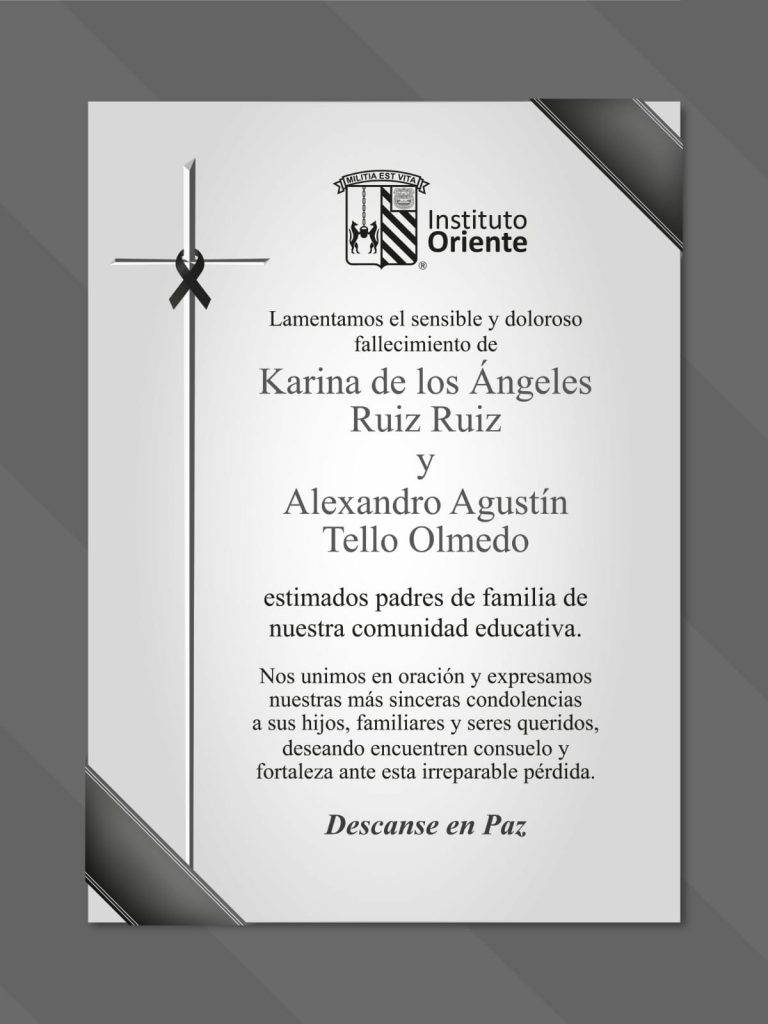 El Instituto Oriente de Puebla confirmó la dolorosa noticia del hallazgo sin vida de Karina de los Ángeles Ruiz Ruiz y Alexandro Agustín Tello Olmedo, padres de familia de su comunidad educativa, y expresó su solidaridad con sus hijos, alumnos del colegio.