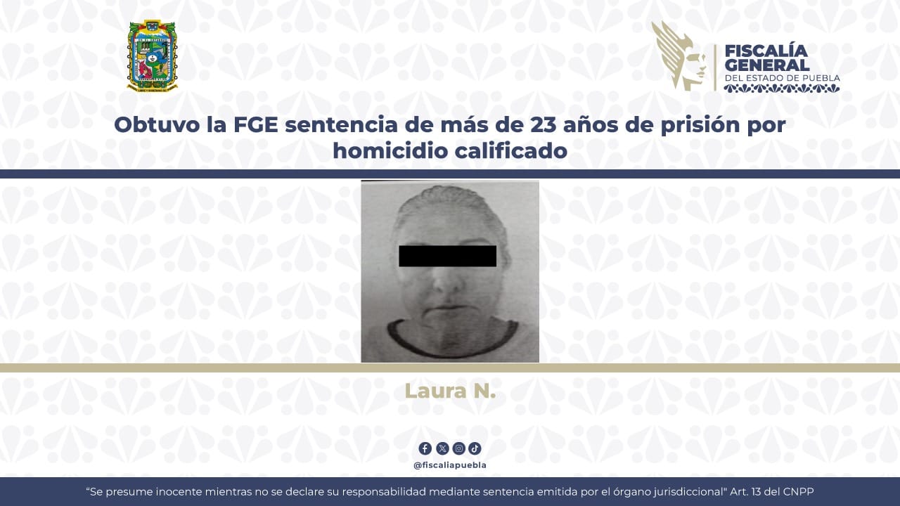 Con base en argumentos aportados por la Fiscalía General del Estado, el Tribunal de Alzada confirmó la sentencia de más de 23 años de prisión en contra de Laura N., por el delito de homicidio calificado.
