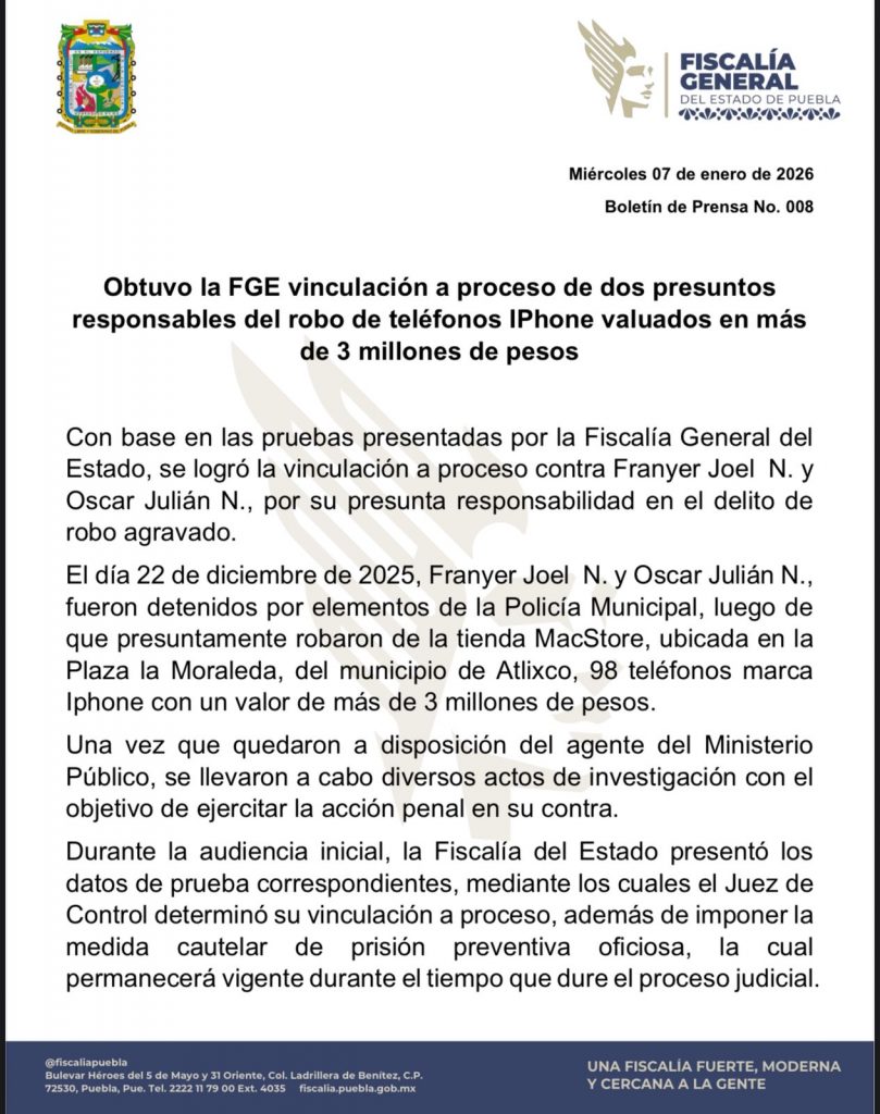 Durante la audiencia inicial, la Fiscalía del Estado presentó los
