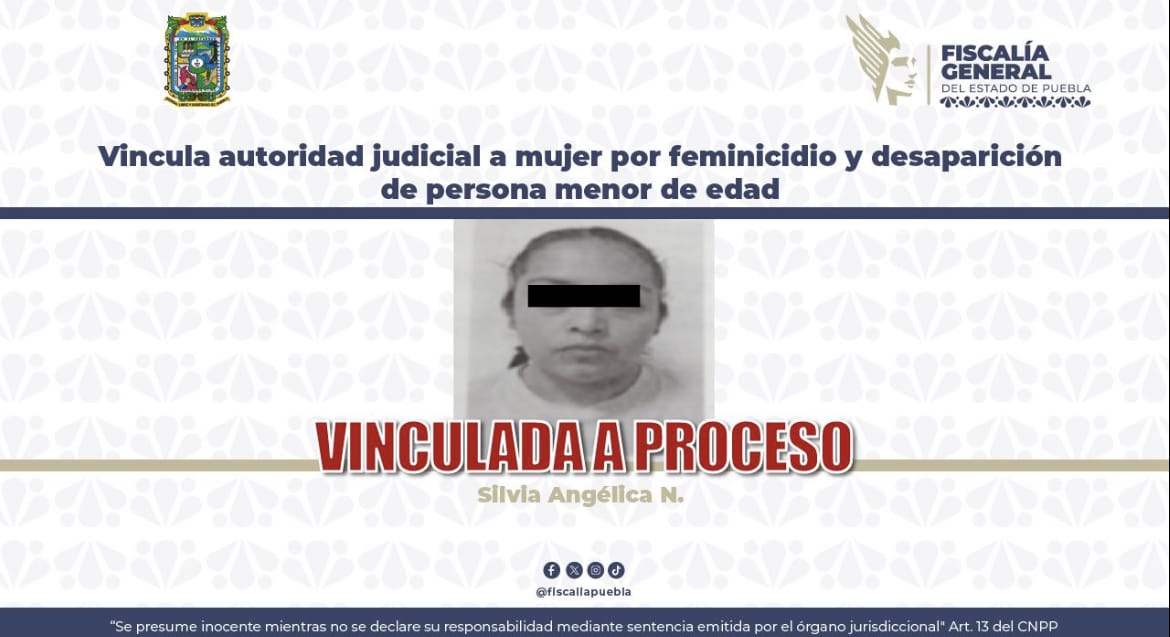 HUAUCHINANGO, PUE. (13 de abril, 2026) — La Fiscalía General del Estado de Puebla obtuvo la vinculación a proceso de Silvia Angélica N., señalada por su probable responsabilidad en los delitos de feminicidio y desaparición de personas cometidos en agravio de su hija de ocho años. Tras la presentación de datos de prueba contundentes, la autoridad judicial determinó que existen elementos suficientes para continuar con el proceso penal, imponiendo medidas cautelares severas para garantizar la justicia en este caso.