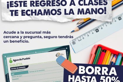 Puebla, Pue., 10 de agosto de 2025 — Porque sabemos que agosto es un mes de muchos gastos, Agua de Puebla lanza el programa especial “Regreso a Clases”, que ofrece a todos los usuarios -domésti...