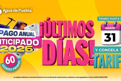Puebla, Pue. – A escasos días de concluir el periodo, Agua de Puebla recordó a la ciudadanía que este 31 de marzo vence el plazo para liquidar el Pago Anual Anticipado 2026. Esta estrategia finan...