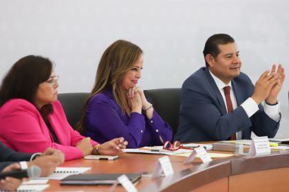 Puebla, Pue. – El gobernador de Puebla, Alejandro Armenta, junto con Silvia Lorena Villavicencio Ayala, secretaria ejecutiva del Sistema Nacional de Protección Integral de Niñas, Niños y Adolesce...