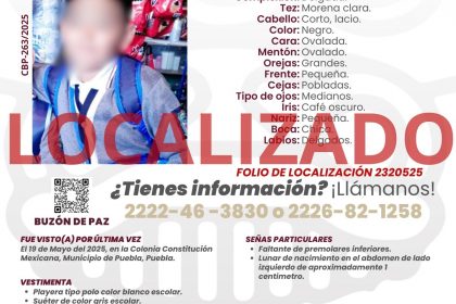Puebla, Pue. – La Comisión de Búsqueda de Personas del Estado de Puebla logró, con éxito y en tiempo récord, la localización con vida de un menor reportado como desaparecido el pasado 19 de ma...