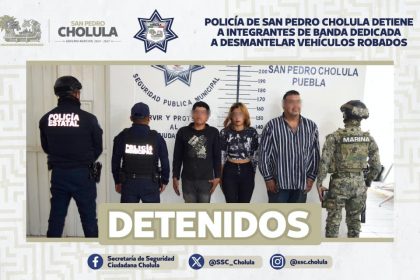 Policía de San Pedro Cholula detiene a integrantes de banda dedicada a desmantelar vehículos robados