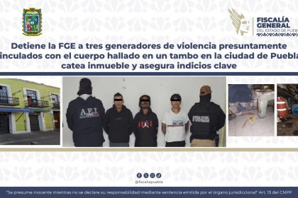 Puebla, Pue. — La Fiscalía General del Estado informa, que como resultado de diversos actos de investigación iniciados el 24 de agosto del presente, por el hallazgo del cuerpo sin vida de una pers...