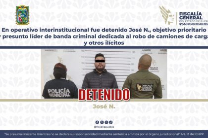 CIUDAD DE PUEBLA, PUE. (27 de enero, 2026) – En una operación de alta precisión coordinada por los tres órdenes de gobierno, se logró la captura de José Gonzalo N., identificado como un objetiv...