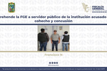 Puebla, Pue. — Por su probable responsabilidad en la comisión de los delitos de cohecho y concusión, la Fiscalía General del Estado dio cumplimiento a la orden de aprehensión en contra de Franci...