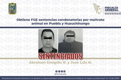CIUDAD DE PUEBLA, PUE. (13 de abril, 2026) — Como resultado del seguimiento jurídico a las denuncias por maltrato animal, la Fiscalía General del Estado de Puebla (FGE) logró sentencias condenato...