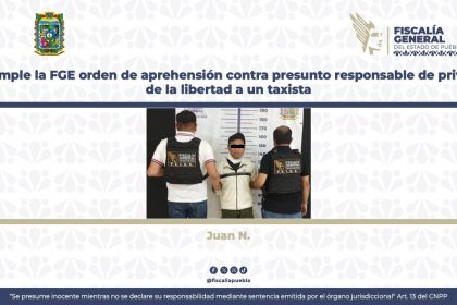 La Fiscalía General del Estado de Puebla cumplió orden de aprehensión en contra de Juan N., identificado como posible responsable del delito de privación ilegal de la libertad en agravio de un con...