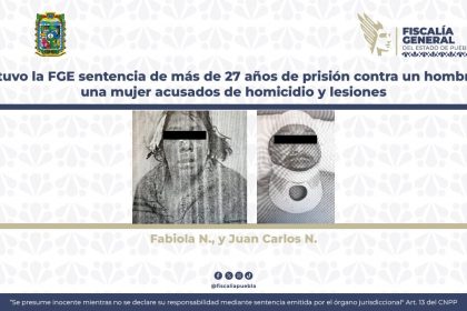 La Fiscalía General del Estado obtuvo una sentencia condenatoria de más de 27 años de prisión en contra de Fabiola N., y Juan Carlos N., luego de acreditarse de manera plena su responsabilidad pen...