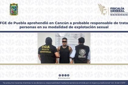 La Fiscalía General del Estado de Puebla, en coordinación con autoridades de Quintana Roo, cumplimentó una orden de aprehensión en el municipio de Cancún, en contra de Omar N., de 33 años de eda...