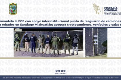 SANTIAGO MIAHUATLÁN, PUE. – En una operación estratégica de inteligencia y despliegue físico, la Fiscalía General del Estado (FGE), en colaboración con la DEFENSA, SEMAR, Guardia Nacional y la...