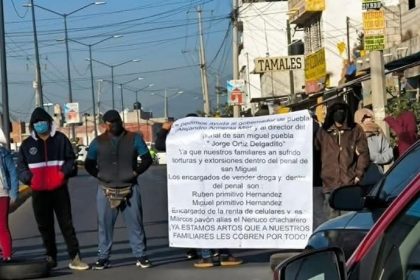 Familiares de internos del penal de San Miguel se manifiestan en el Camino al Batán, denuncian que hay reos que extorsionan a los reclusos, por lo que piden sean trasladados a otros Centros de Reinse...