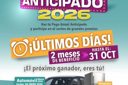 Puebla, Pue. – Agua de Puebla invita a todos los usuarios a aprovechar los últimos días de sus programas de apoyo: “Pago Anual Anticipado 2026” con dos meses de beneficio y el “Programa ...
