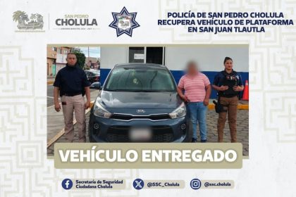 San Pedro Cholula, Pue. — Como resultado de los protocolos de búsqueda y atención inmediata, elementos de la Secretaría de Seguridad Ciudadana de San Pedro Cholula localizaron y aseguraron un veh...