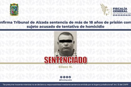 CIUDAD DE PUEBLA, Pue.– Derivado de los argumentos presentados por la Fiscalía General del Estado, un Tribunal de Alzada confirmó la condena de 18 años y 4 meses de prisión en contra de Eliseo N...